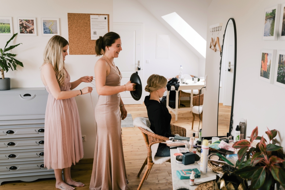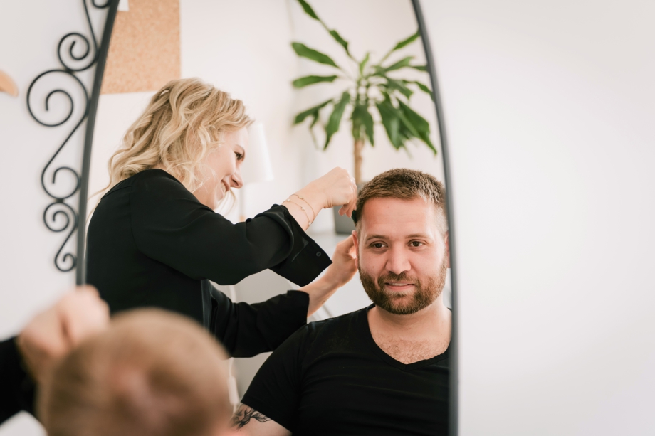 Wenn die Braut selbst Hairstylistin ist, kann es passieren, dass sie an ihrem Hochzeitstag nicht nur sich selbst, sondern auch ihren zukünftigen Ehemann für den