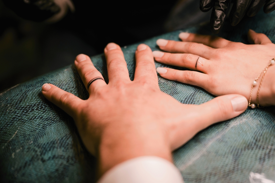 Und als i-Tüpfelchen wurde der Ehebund nicht nur klassisch mit Ringen besiegelt. Für die Hochzeitsfeier wurde eigens eine Tätowiererin engagiert, die die Ringe