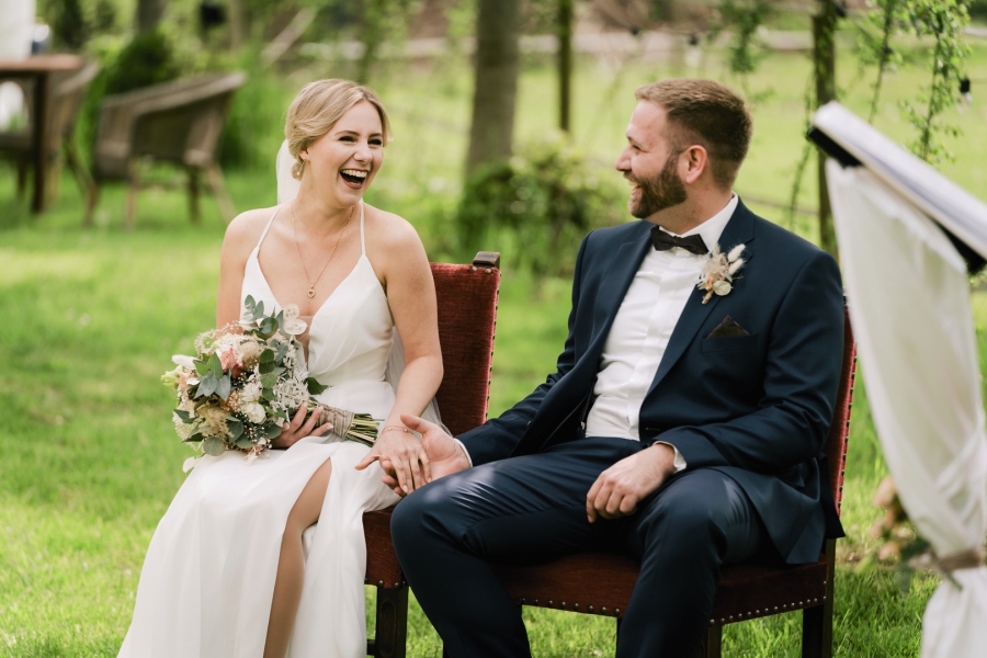 großen Tag stylt. So geschehen bei Kimberley und Jean-Luc. Die beiden haben sich in einer wunderbar emotionalen, freien Trauung auf dem Niershof in Viersen das Ja-Wort gegeben. Es wurde von Herzen